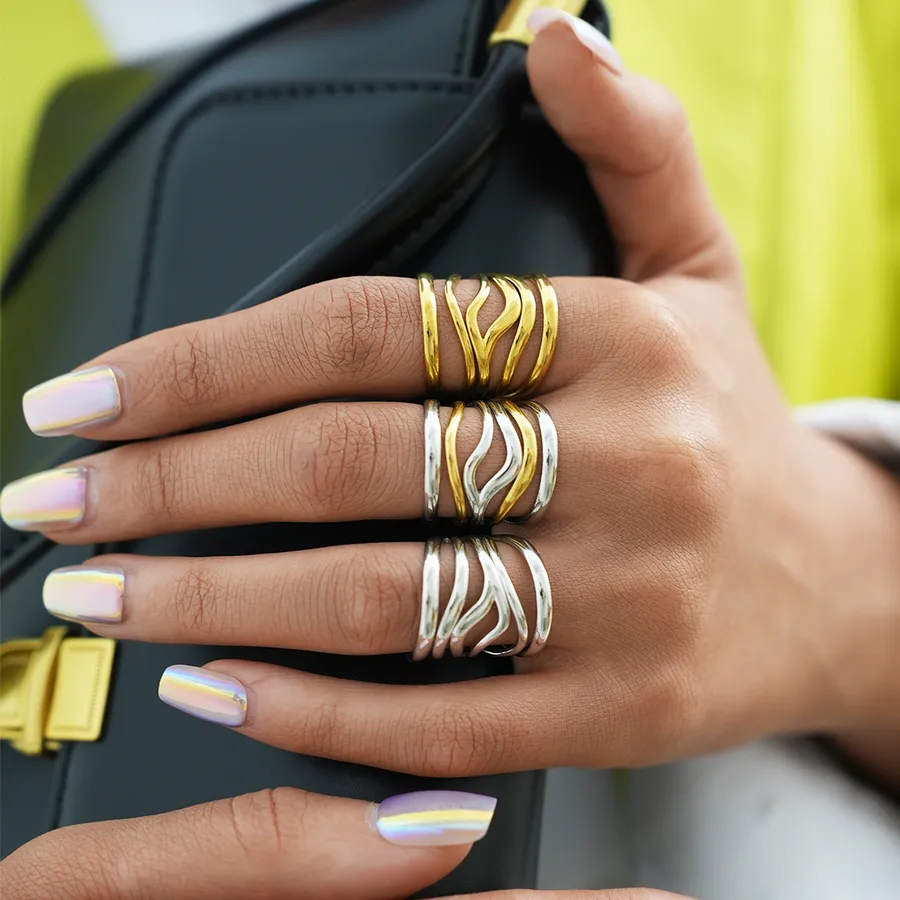 Pièce phare de la « Collection Princesse du Désert », cette bague aux anneaux entrelacés en placage Or 18K véritable capture le mouvement fluide du vent sur le sable. Son polissage artisanal d’exception offre un fini miroir pur, célébrant une élégance solaire et moderne sans artifice.