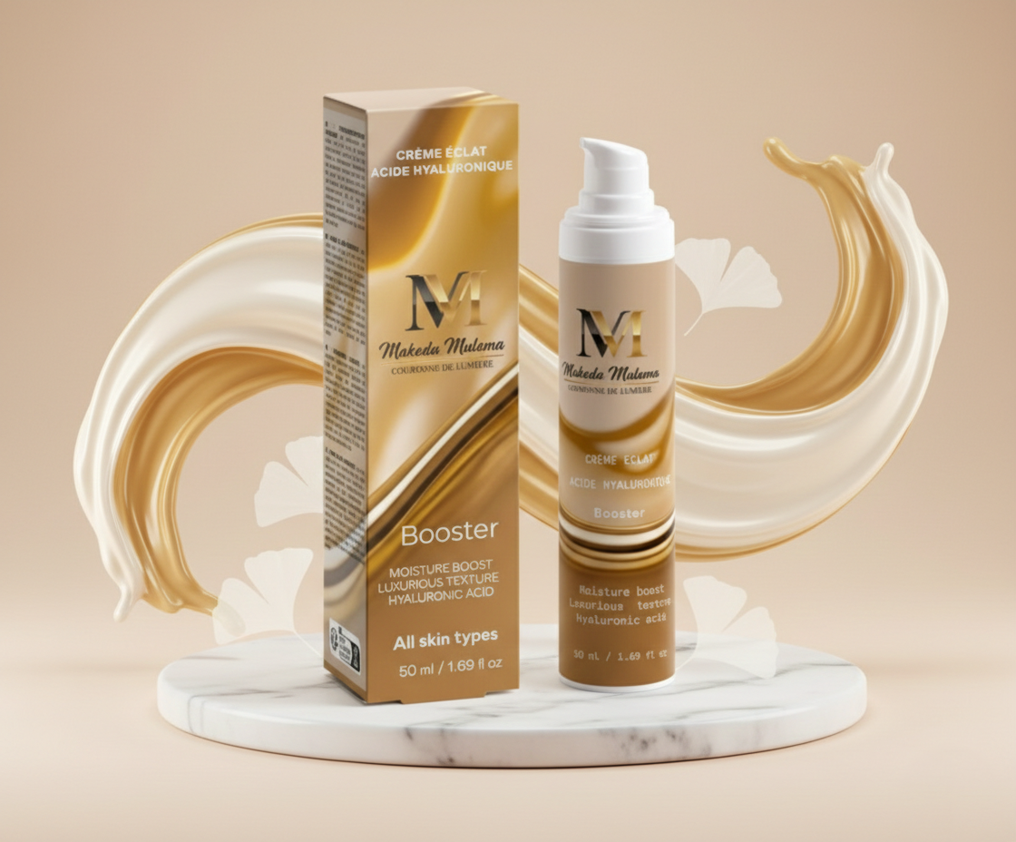 La Crème Éclat MAKEDA MULEMA enveloppe la peau d’une texture soyeuse qui fond instantanément et pénètre avec délicatesse. Formulée avec un complexe d’Acide Hyaluronique multi-poids moléculaires, elle aide à maintenir l’éclat, l’hydratation et à préserver la souplesse naturelle de la peau.