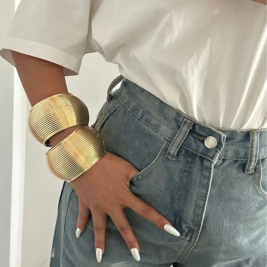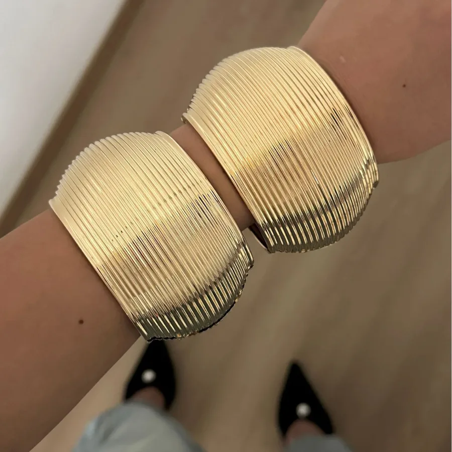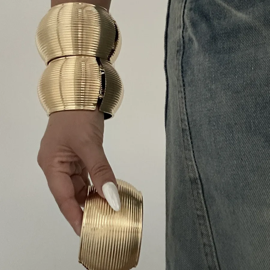 Pièces maîtresses de la « Collection Princesse du Désert », ces bracelets au design strié capturent la lumière des dunes. Leur placage Or 18K véritable assure un éclat prestigieux et durable. Une parure audacieuse pour une allure royale instantanée.